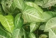 合果芋是天南星科,合果芋属多年生常绿草本植物,合果芋的茎节具气生根,攀附他物生长。叶片呈两型性,箭形或戟形;叶基裂片两侧常着生小型耳状叶片。佛焰苞浅绿或黄色。合果芋一般不易开花。…全部>>