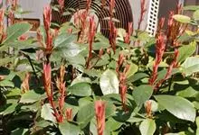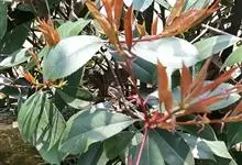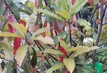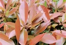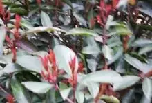 红叶石楠 是蔷薇科,石楠属杂交种,为常绿小乔木或灌木,乔木高可达5米、灌木高可达2米。叶片革质,长圆形至倒卵状、披针形,叶端渐尖,叶基楔形,叶缘有带腺的锯齿,花多而密,复伞房花序,花白色,梨果黄红色,…全部>>