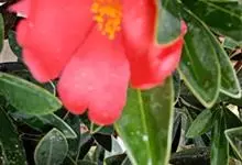 滇山茶:灌木至小乔木,有时高达15米,嫩枝无毛。叶阔椭圆形,上面干后深绿色,发亮,下面深褐色,无毛,侧脉6-7对,边缘有细锯齿。花顶生,红色,直径10厘米,无柄;苞片及萼片10-11片,花瓣红色,…全部>>