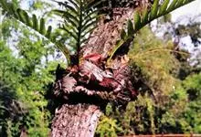 崖姜 Ching)是水龙骨科、崖姜蕨属植物。根状茎横卧,粗大,肉质,密被蓬松的长鳞片,有被毛茸的线状根混生于鳞片间,弯曲的根状茎盘结成为大块的垫状物,由此生出一丛无柄而略开展的叶,…全部>>