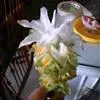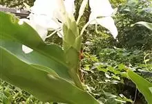 姜花又名野姜花。是姜科姜花属的多年生草本植物,茎高1-2米;叶片长圆状披针形或披针形,叶面光滑,叶背被短柔毛;穗状花序顶生,椭圆形,花芬芳,白色;蒴果卵状三棱形,微黄绿色;种子鲜红色,具橘红色的假种皮。…全部>>
