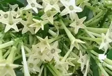 夜香树是茄科、夜香树属直立或近攀援状灌木。枝条细长而下垂。叶有短柄,叶片矩圆状卵形或矩圆状披针形,全缘,顶端渐尖,基部近圆形或宽楔形,两面秃净而发亮,有6-7对侧脉。伞房式聚伞花序,腋生或顶生,…全部>>