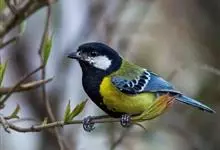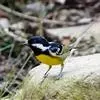 黄腹山雀是雀形目山雀科山雀属鸟类。虹膜褐色或暗褐色;嘴蓝黑色或灰蓝黑色;头、喉胸斑黑色,颊斑、颈后斑白色;上体蓝灰色,腰银白色;翼具两排白色点斑;下胸、腹鲜黄色;尾黑色,…全部>>