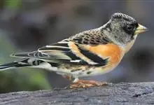 燕雀属小型鸟类,体长14-17厘米。嘴粗壮而尖,呈圆锥状。雄鸟从头至背辉黑色,背具黄褐色羽缘。腰白色,颏、喉、胸橙黄色,腹至尾下覆羽白色,两胁淡棕色而具黑色斑点。两翅和尾黑色,翅上具白斑。…全部>>