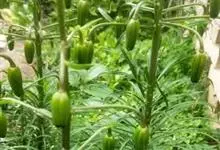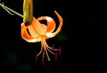 川百合:鳞茎为扁球形,白色。茎干绿色,上半部有小突起及稀疏的绵毛。叶片散生,为线状披针形, 边缘反卷并有明显的小乳头状突起,中脉明显,往往在上面凹陷,在背面凸出,叶腋有白色绵毛。花下垂,桔红色,花被…全部>>