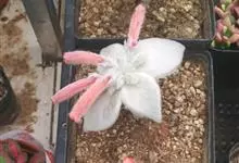 月宴 H.E.Moore) [1-2] 又名断崖女王,是隶属于苦苣苔科大岩桐属 石生植物、多肉植物。具地下块茎,叶面被有稠密、质感似天鹅绒的大量白色绒毛;生于枝顶端,数朵群聚开放,花筒较细,长3至…全部>>