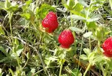 蛇莓 Teschem.),别名三爪凤、龙吐珠、东方草莓等,为蔷薇科蛇莓属的多年生草本植物。其根茎短,粗壮;匍匐茎多数;小叶片倒卵形至菱状长圆形;托叶窄卵形至宽披针形;花单生于叶腋,花瓣倒卵形,…全部>>