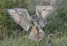 雕鸮是鸮形目鸱鸮科雕鸮属的一种大型鸟类 。雕鸮全长55—71厘米,体羽大部分为黄褐色;喉白色;头有耳簇羽;后颈和上背棕色,…全部>>