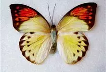 鹤顶粉蝶是鳞翅目粉蝶科鹤顶粉蝶属昆虫,又称端红蝶。雄蝶翅白色,前翅前缘及外缘黑色,自前缘二分之一处至外缘近后角处有黑色锯齿状斜纹,围住顶部三角形赤橙色斑,…全部>>