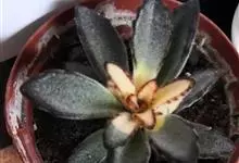 黑兔耳是景天科伽蓝菜属直立肉质灌木。叶片对生,长梭形、叶片被深褐色的斑点包围;新叶黄褐色,老叶变为黑褐色;聚伞花序,花序较高,花朵钟状,黄绿色;初夏开花。黑兔耳原产于墨西哥。喜阳光充足的环境,也耐半阴,…全部>>