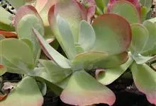 唐印为景天科伽蓝菜属的多年生肉质草本植物。植株中型,株高50厘米,宽20厘米,多分枝;叶片肉质,对生,卵形,全缘,先端钝圆,叶片淡绿色至灰绿色,表面被有厚厚的白粉,光照充足时,叶缘呈红色;圆锥花序,…全部>>