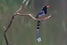 红嘴蓝鹊,别名山鹊、长尾鹊,是鸦科蓝鹊属的一种观赏性较强的大型鸣禽。该物种为体长54~65cm,头、颈、喉和胸黑色,头顶至后颈有一块白色至淡蓝白色或紫灰色块斑,其余上体紫蓝灰色或淡蓝灰褐色。尾长呈凸状,…全部>>