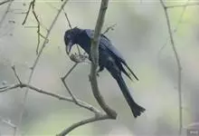 发冠卷尾是中型鸟类,体长28-35厘米。通体绒黑色缀蓝绿色金属光泽,额部具发丝状羽冠,外侧尾羽末端向上卷曲。栖息于海拔1500米以下的低山丘陵和山脚沟谷地带,多在常绿阔叶林、次生林或人工松林中活动。…全部>>