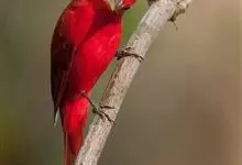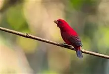 血雀雀科朱雀属鸟类,体重36-49克;体长155-182毫米。雄鸟除眼先、翼与尾为黑色外,通体为鲜红色;嘴鲜黄;雌鸟暗橄榄绿色,羽端较淡或带黄色;腰鲜黄;嘴较暗。虹膜褐色;嘴黄色;腿和脚褐色。…全部>>