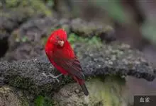 普通朱雀是雀形目雀科朱雀属鸟类,又名红朱雀、马料、青麻料。雄鸟上体红色,下体淡红色;头部、喉部、胸部及腰部亮红色;背部褐色染红色;两翼及尾黑褐色,羽缘染红色。雌鸟上体橄榄褐色,下体近白色,…全部>>