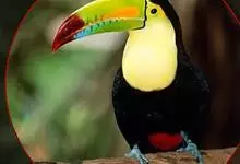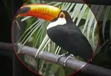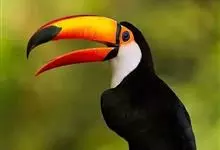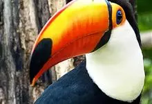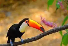 鵎鵼:又名巨嘴鸟。体长约67厘米,嘴巨大,长17~24厘米,宽5~9厘米,形似嘴刀。嘴非常漂亮,上半部黄色,略呈淡绿色,下半部呈蔚蓝色,喙尖点缀着一点殷红。眼睛四周镶嵌着天蓝色羽毛眼圈,胸脯橙黄色,…全部>>