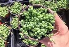 珍珠吊兰因鼓鼓、饱满翠绿的椭圆形小叶子形似珍珠状而得名。又名翡翠珠、 佛珠吊兰、翡翠珠、绿之铃,绿铃。菊科千里光属多肉植物,花期一般是当年的12月至翌年1月。珍珠吊兰性喜富含有机质的、疏松肥沃的土壤。…全部>>