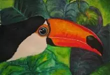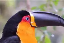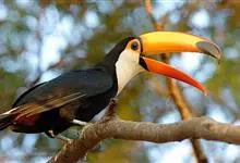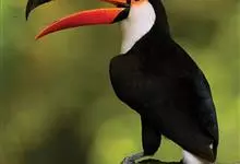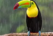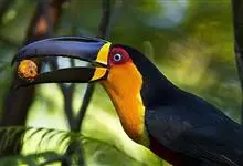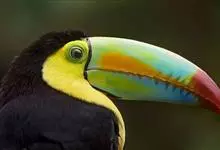鵎鵼:又名巨嘴鸟。体长约67厘米,嘴巨大,长17~24厘米,宽5~9厘米,形似嘴刀。嘴非常漂亮,上半部黄色,略呈淡绿色,下半部呈蔚蓝色,喙尖点缀着一点殷红。眼睛四周镶嵌着天蓝色羽毛眼圈,胸脯橙黄色,…全部>>