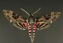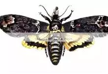 鬼脸天蛾,是鳞翅目天蛾科面形天蛾属动物。成虫翅展100~125毫米,体黑褐色;胸背有骷髅形斑纹;卵圆球形,直径约2毫米,淡黄绿色,表面光滑;老熟幼虫体长70~90毫米,蛹体长约56毫米;前翅为褐色,…全部>>