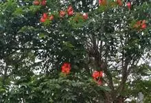 火焰木,又名苞萼木、喷泉树,为紫葳科常绿大乔木,株高10—20米,叶为奇数羽状复叶,对生,较大,斜椭圆形,全缘,纸质,叶面深绿色。 全部>>