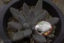 星美人是景天科、厚叶莲属多年生多浆肉质草本植物。植株具直立的短茎。叶12-20片互生,排列呈延长的莲座状,肉质,倒卵形,长2-4厘米,宽2-2.5厘米,厚2厘米,先端平滑钝圆,…全部>>
