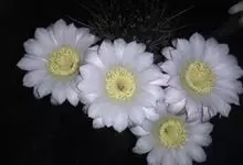 仙人球花 仙人掌科,仙人球属。植株单生或成丛。幼株球形,老株长成圆筒状,高可达75厘米,直径12-15厘米。球体暗绿色,具棱11-12。刺锥状,黑色,长1-1.5厘米。花着生于球体侧方,大型嗽喇叭状…全部>>