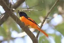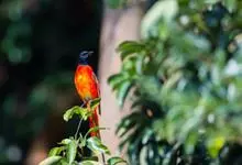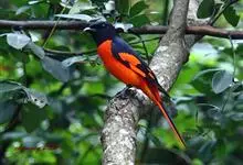 灰喉山椒鸟:共有8个亚种。体长18-22厘米。雄鸟头部和背亮黑色,腰、尾上覆羽和下体朱红色,翅黑色具一大一小的两道朱红色翼斑。中央尾羽黑色,外侧尾羽基部黑色,端部红色。…全部>>