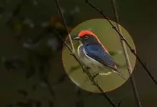 朱背啄花鸟:体重6-8克,体长81-97毫米。是一种小型的黑色及红色啄花鸟。雄鸟顶冠、背及腰猩红色,两翼、头侧及尾黑,两胁灰,下体余部白色。雌鸟上体橄榄色,腰及尾上覆羽猩红,尾黑。亚成鸟清灰色,嘴橘黄,…全部>>