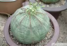 布纹球是大戟科、大戟属植物。植株小球形,直径8-12厘米。具棱8,整齐。表皮灰绿色中有红褐色纵横交错的条纹,顶部条纹较密。棱缘上有褐色小钝齿。雌雄异株,雌株球体较扁,雄株茎圆筒形,均为单生,…全部>>