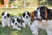 圣伯纳犬,别名巴里汉德,属于大型工作犬,肩高约65~90厘米,体重约50~90千克。圣伯纳犬身体强壮,被毛红褐色和白色相间,头圆而宽大。颈部强壮,胸宽深,背直。前肢长直,腕关节略前倾,后肢腿骨粗壮,…全部>>