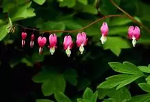 荷包牡丹 Fukuhara),是罂粟科荷包牡丹属的多年生草本植物,株高30-60厘米,具肉质根状茎;茎直立呈圆柱形;叶二回三出全裂,状似牡丹叶;总状花序顶生,基部为心形,花瓣紫红色至粉红色,稀白色,…全部>>