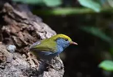 金冠地莺:形态与灰腹地莺相似,上体橄榄绿,前额至头顶渲染亮金黄色;下体几乎纯暗石板灰色,下嘴基部橙红色或橙黄色。虹膜褐色;上嘴角褐色,下嘴基部橙红色或深橙黄色直至嘴尖;跗跖和趾褐色,爪褐色。…全部>>