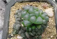 姬玉露 M.B.Bayer)是阿福花科,十二卷属的多年生草本。植株无茎,初为单生,后逐渐呈群生状;叶绿色,肉质,上半段呈透明或半透明状,称为“窗”,用于光合作用。总状花序,小花白色。原产南非,…全部>>