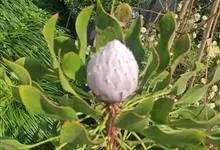帝王花,山龙眼科帝王花属多年生常绿灌木植;茎干粗壮,叶色翠绿光亮;花朵呈圆球状;其苞片有的完全打开,使花朵呈扁平状;有的则呈半闭合状态,使花朵相对修长,…全部>>