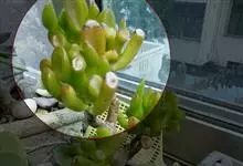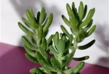 筒叶花月,是景天科青锁龙属的多年生草本植物。植株多分株,灌木状,茎较粗壮,圆柱形,表皮灰褐色;叶片肉质,互生,呈圆筒状,簇生于茎或分枝顶端,叶端呈斜截形,截面为椭圆形;花呈星状,淡白色;花期秋季。…全部>>