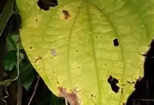 黄独,是薯蓣科薯蓣属草本植物;块茎卵圆形或梨形,浅绿色稍带红紫色,光滑无毛;叶片宽卵状心形或卵状心形,两面无毛;蒴果成熟时草黄色,无毛;种子深褐色,扁卵形;花期7-10月;果期8-11月。形状象芋头,…全部>>