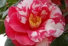 滇山茶:灌木至小乔木,有时高达15米,嫩枝无毛。叶阔椭圆形,上面干后深绿色,发亮,下面深褐色,无毛,侧脉6-7对,边缘有细锯齿。花顶生,红色,直径10厘米,无柄;苞片及萼片10-11片,花瓣红色,…全部>>