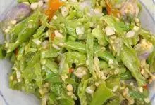干煸豆角是用四季豆制作作为主要食材,以酱油、香油、味精、醋作为调料制作而成的一道家常菜。口味咸香辣,色泽嫩绿,口感脆嫩,营养丰富。豆角中的纤维有利于降低人体内的胆固醇,…全部>>