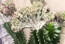 麒麟掌,是大戟科大戟属多年生植物。为金刚纂的带化变异变种。麒麟掌的株乳汁丰富;它的茎圆柱状,上部多分枝,绿色;叶互生,稀少,常生于嫩枝顶端脊上,倒卵形、倒卵状长圆形或匙形,顶端钝圆,具小凸尖,全缘,…全部>>
