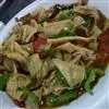 千页豆腐是素食新产品,以大豆分离蛋白和水为主要原料,食用植物油、淀粉等为辅料,添加或不添加稳定剂和凝固剂、增稠剂,经搅拌乳化、调味、蒸煮、冷却、切块或再速冻等全部或部分工艺制成的大豆蛋白制品。…全部>>