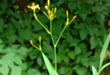 射干 Redouté)是鸢尾科射干属多年生草本植物。根状茎为不规则的块状,斜黄色或黄褐色;花橙红色,散生紫褐色的斑点;花药呈条形;子房下位,倒卵形;蒴果倒卵形或长椭圆形;种子圆球形,黑紫色,有光泽。…全部>>