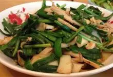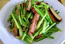 韭菜炒香干是一道菜品,制作原料主要有韭菜、香干等。鲜嫩可口,有点小小的微辣,加入切成段的韭菜,翻匀,…全部>>