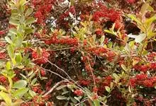 火棘 H. L. Li)是蔷薇科火棘属常绿灌木,老枝呈暗褐色;叶片呈倒卵形,边缘有钝锯齿,齿尖向内弯,两面皆无毛;叶柄短,无毛或嫩时有柔毛;花序是复伞房状,花瓣呈白色近圆形;果球近圆形,…全部>>