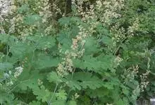 小果博落回 Fedde)是罂粟科、博落回属植物。直立草本,基部木质化,具乳黄色浆汁。茎高0.8-1米,通常淡黄绿色,光滑,多白粉,中空,上部多分枝。叶片宽卵形或近圆形,先端急尖、钝或圆形,基部心形,…全部>>