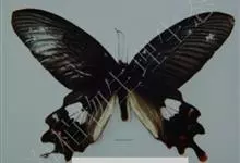 宽尾凤蝶是凤蝶科、宽尾凤蝶属昆虫。翅展115-130毫米。体、翅黑色,翅面散生黄色鳞片;前翅前缘色深,后翅外缘波状,波谷红色,。雄性外生殖器上钩突窄小,骨化。雌性外生殖器产卵瓣较长;交配孔宽大,…全部>>