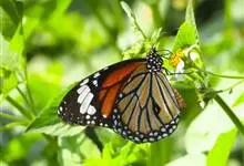 黑脉金斑蝶:翅阔8.6-12.4厘米。雄蝶较雌蝶为大。成年蝶颜色鲜艳,翅膀上有显眼的橙色及黑色斑纹,周围是宽阔的黑色边框,布有许多白色斑点。这种引人注目的着色是对捕食者的视觉警告,表示这个物种有毒;…全部>>