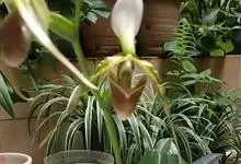 兜兰是兰科兜兰属的多年生草本植物。根茎粗状,直径3~4毫米,有很多须根;叶基生,叶片肉质增厚,排成紧密2列,叶片呈长圆形,表面有极短柔毛;总状花序,粉白色,花葶直立或倾斜,深绿色或褐色,花瓣大,呈唇形,…全部>>