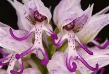 意大利红门兰,也称裸男兰、意大利男人兰,为兰科红门兰属的一种,植株高20-50厘米,花顶生,为发白的粉红色或紫色,花被片为头盔状,有暗色条纹,整朵花的造型就像一个戴着草帽的裸体男人。蒴果直立,…全部>>