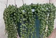 珍珠吊兰因鼓鼓、饱满翠绿的椭圆形小叶子形似珍珠状而得名。又名翡翠珠、 佛珠吊兰、翡翠珠、绿之铃,绿铃。菊科千里光属多肉植物,花期一般是当年的12月至翌年1月。珍珠吊兰性喜富含有机质的、疏松肥沃的土壤。…全部>>