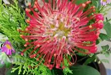 针垫花是山龙眼科针垫花属的常绿蔓生灌木。植株多分枝;叶轮生,有针状、心形、矛尖形等,叶缘和叶尖有锯齿,叶无柄,为簇生,全缘且革质;头状花序,单生或少数聚生,花冠小,为针状,…全部>>